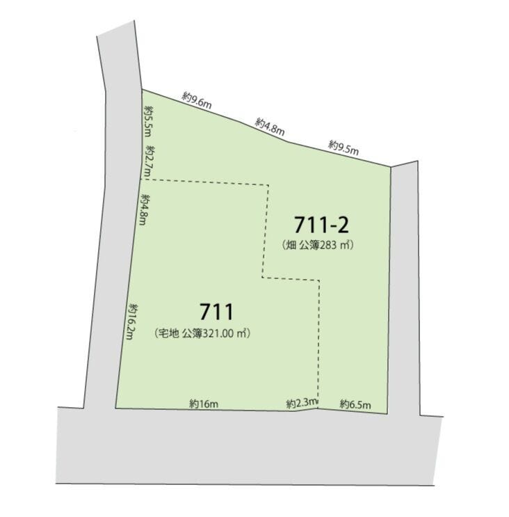 | 土地面積 | 公604㎡(182.71坪) | 接道 | 北側(公道)幅 約6.5m 間口 約24.80m 東側(公道)幅 約3.0m 間口 約29.20m 西側幅 約2.4m 間口 約22.64m |