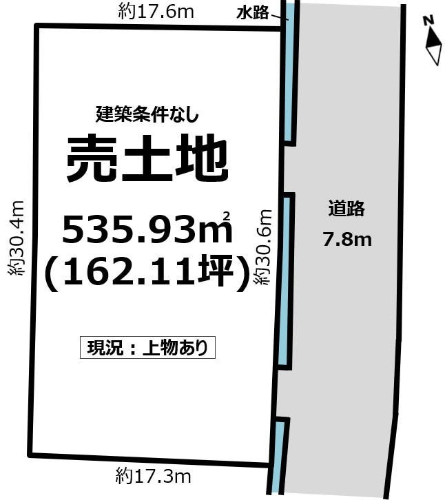 | 土地面積 | 公535.93㎡(162.11坪) | 接道 | 東側(公道)幅 約7.8m |