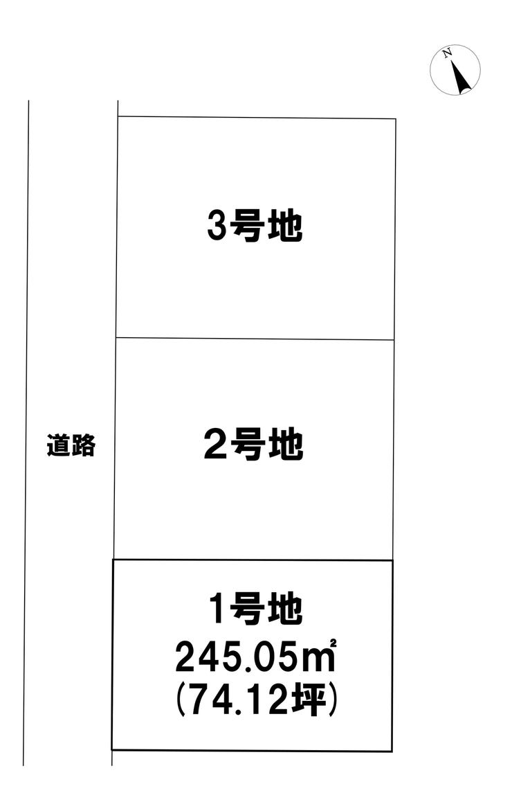 | 土地面積 | 実245.05㎡(74.12坪) | 接道 | 北西側(公道)幅 約6.0m 間口 約12.91m |