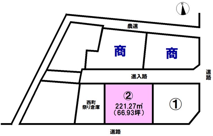 | 土地面積 | 221.27㎡(66.93坪) | 接道 | 南側(公道)幅 約7.4m 北側幅 約4.7m |
