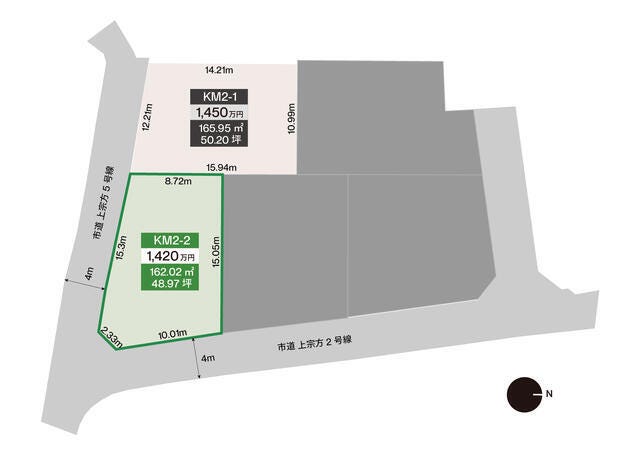 | 土地面積 | 公162.02㎡(49.01坪) | 接道 | 南側(公道)幅 約4.0m 東側(公道)幅 約4.0m |