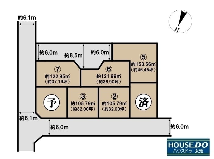 | 土地面積 | 108.52㎡(32.82坪) | 接道 | 北側(公道)幅 約6.0m 東側(公道)幅 約6.1m |