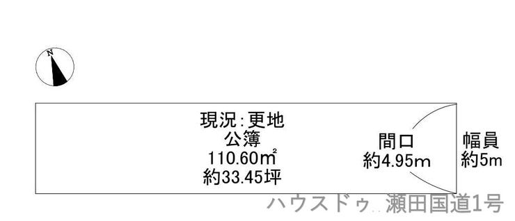 | 土地面積 | 公110.6㎡(33.45坪) | 接道 | 東側(公道)幅 約5.0m 間口 約4.90m |
