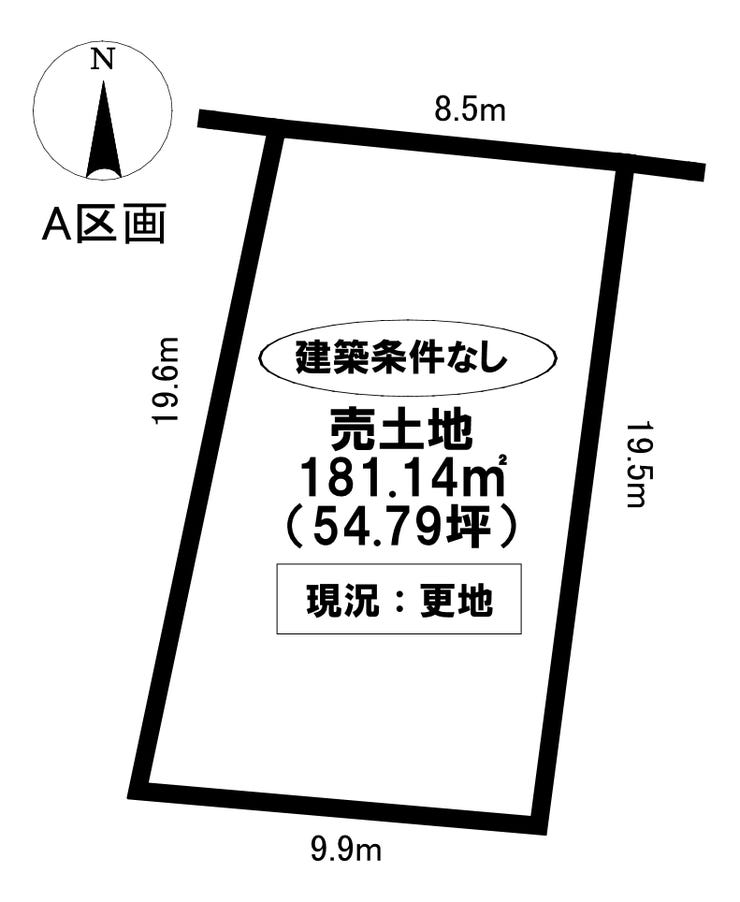 | 土地面積 | 公181.14㎡(54.79坪) | 接道 | 北側(公道)幅 約4.0m 間口 約8.50m |