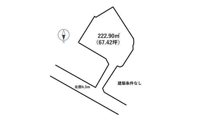 | 土地面積 | 222.9㎡(67.42坪) | 接道 | 北側幅 約4.3m |