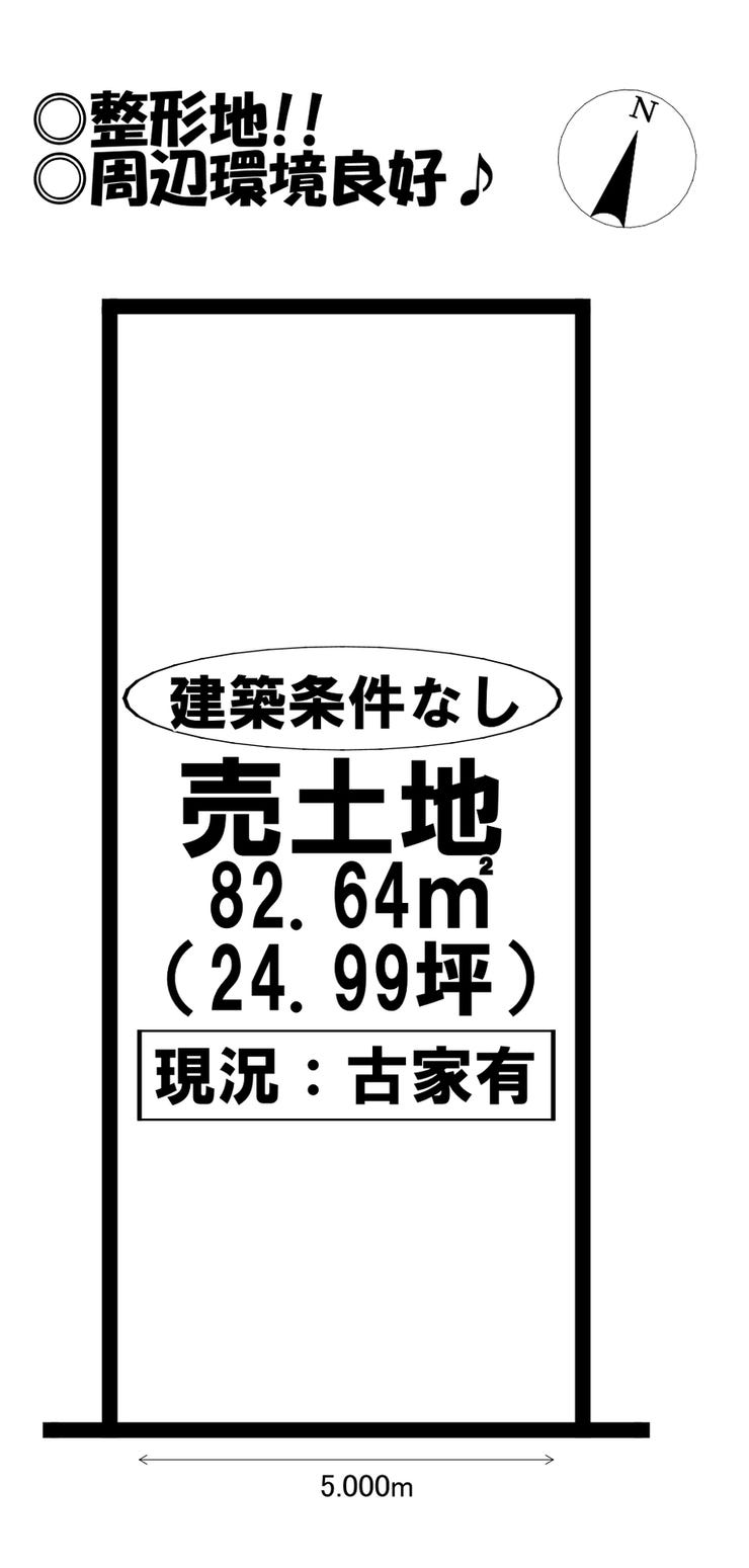 | 土地面積 | 公82.64㎡(24.99坪) | 接道 | 南東側(公道)幅 約5.2m 間口 約5.00m |
