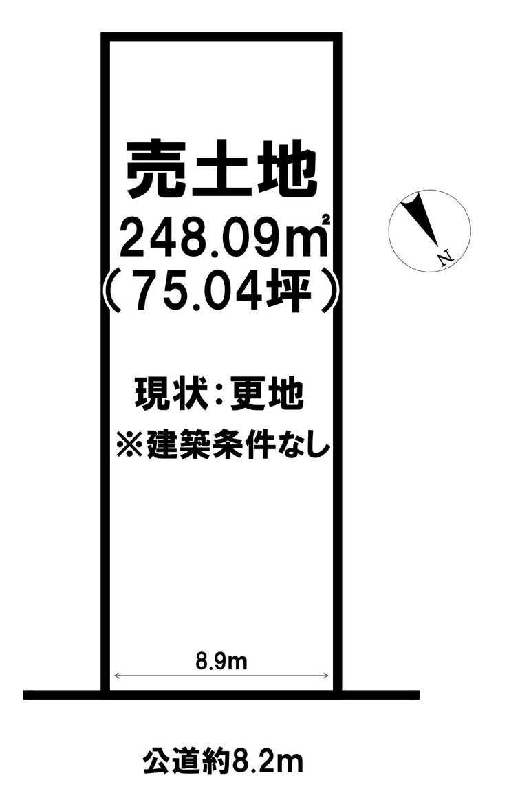 | 土地面積 | 公248.09㎡(75.04坪) | 接道 | 北東側(公道)幅 約8.2m 間口 約8.90m |