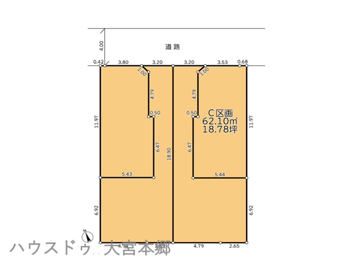 | 土地面積 | 62.1㎡(18.78坪) | 接道 | 北側(公道)幅 約4.0m 間口 約4.21m |