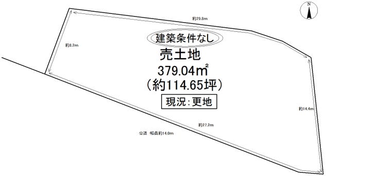 | 土地面積 | 実379.04㎡(114.65坪) | 接道 | 南側(公道)幅 約14.0m |