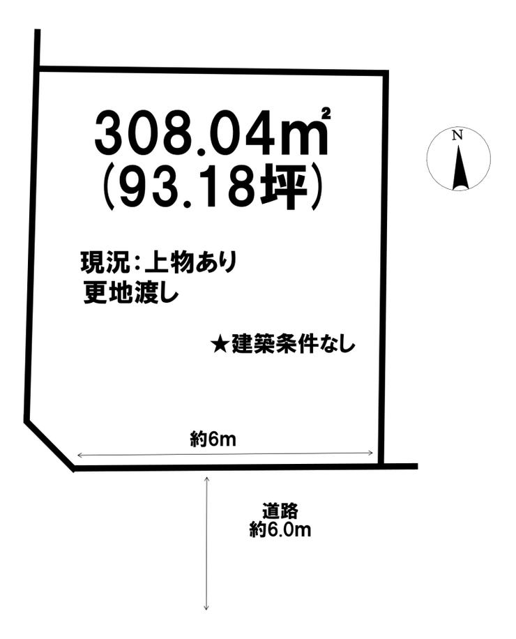 | 土地面積 | 公308.04㎡(93.18坪) | 接道 | 南側(公道)幅 約6.0m 間口 約6.00m |