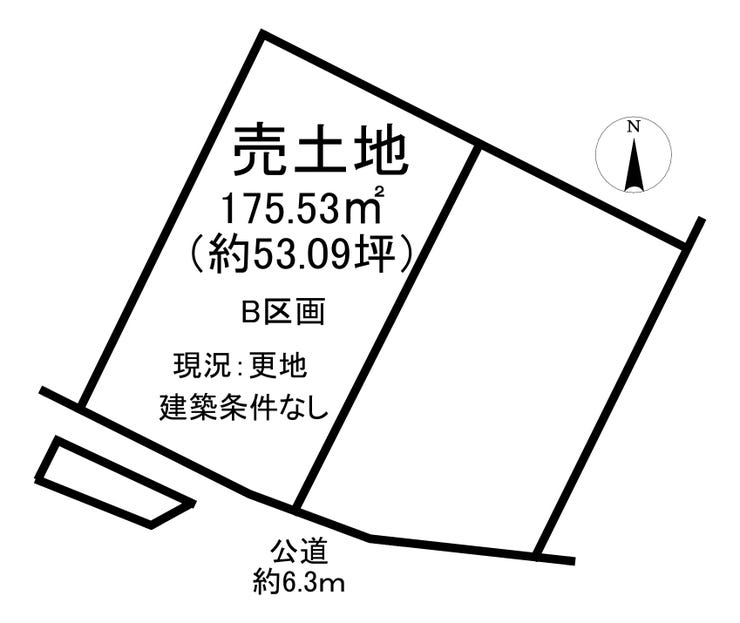 | 土地面積 | 175.53㎡(53.09坪) | 接道 | 南側幅 約6.3m 東側幅 約5.8m |