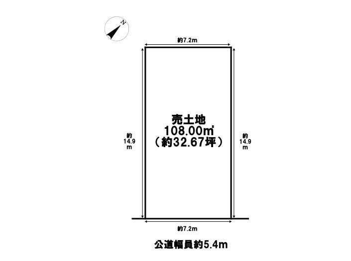 | 土地面積 | 108㎡(32.67坪) | 接道 | 南東側(公道)幅 約5.4m 間口 約7.20m |