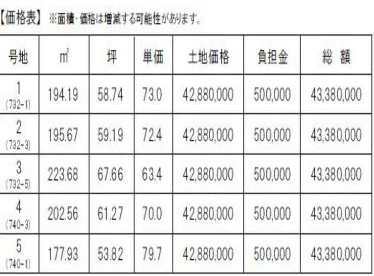 | 備考 | ◆京山学区! ◆全5区画の分譲地です! ◆建築条件なし!お好きなハウスメーカーで建築可能です♪ ※面積:177.93~223.68 ※各号地の延長敷地部分に、通行・給排水の地役権を設定します。 |
