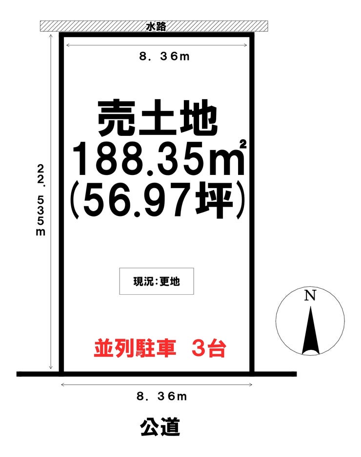 | 土地面積 | 実188.35㎡(56.97坪) | 接道 | |
