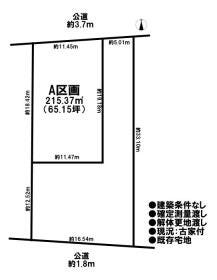 | 土地面積 | 518.87㎡(156.95坪) | 接道 | 北側(公道)幅 約2.7m 間口 約15.58m 東側(公道)幅 約2.2m 間口 約23.57m |