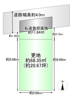 | 土地面積 | 公80.19㎡(24.25坪) | 接道 | 北側(私道)幅 約4.0m 間口 約5.30m |