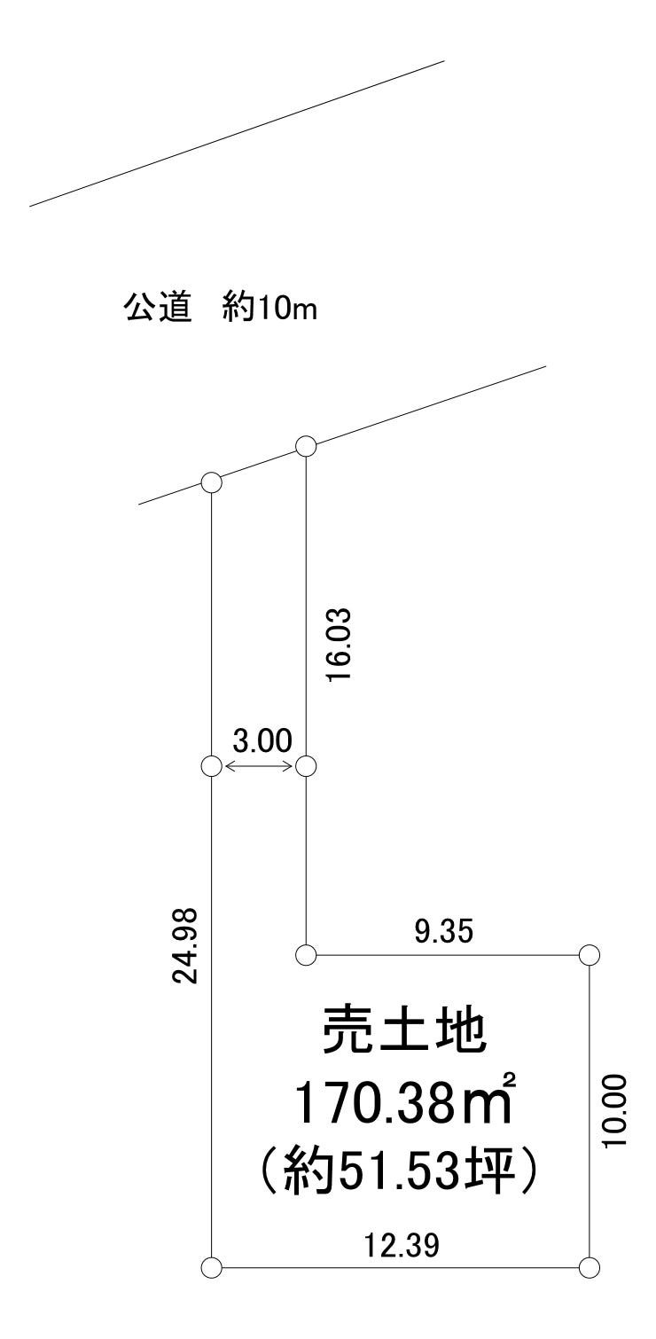 | 土地面積 | 実170.38㎡(51.53坪) | 接道 | 北側(公道)幅 約10.0m 間口 約3.10m |