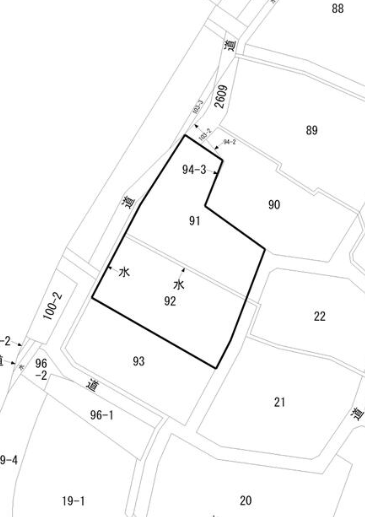 | 備考 | 91番、92番の一方のみの購入でも可。 建物付きで購入も可能となっております。その場合の価格はご相談ください。 91番、92番の境には水路があり現在、雨水での利用があるため用途廃止はできません。 |