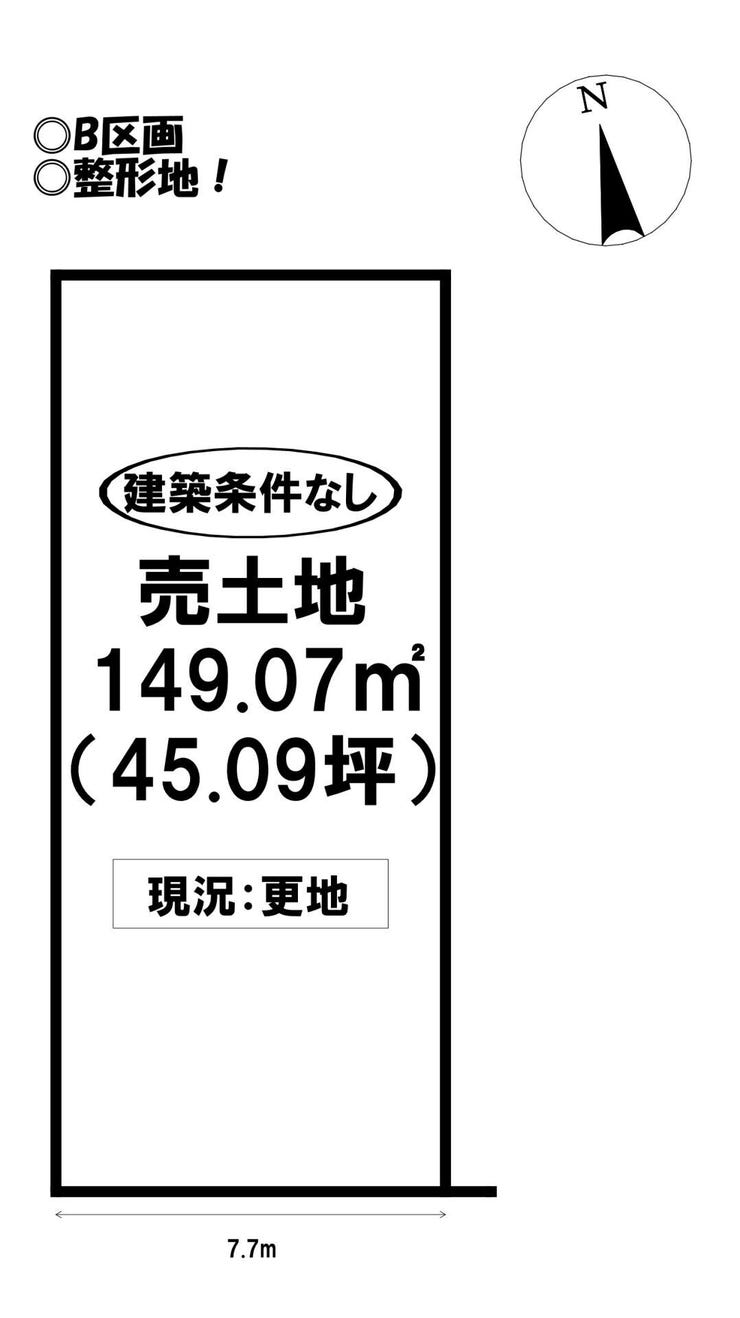 | 土地面積 | 実149.07㎡(45.09坪) | 接道 | 南側(公道)幅 約5.0m 間口 約7.70m |
