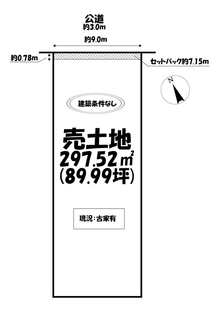 | 土地面積 | 297.52㎡(89.99坪) | 接道 | 北側(公道)幅 約3.0m 間口 約9.00m |