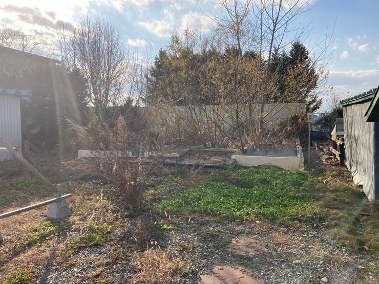 ※敷地内に建築途中の基礎と中古の車庫物置があり、現状でのお引渡しとなります。