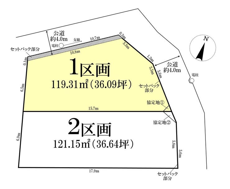 | 土地面積 | 119.31㎡(36.09坪) | 接道 | 北西側(公道)幅 約4.0m 北東側(公道)幅 約4.0m |