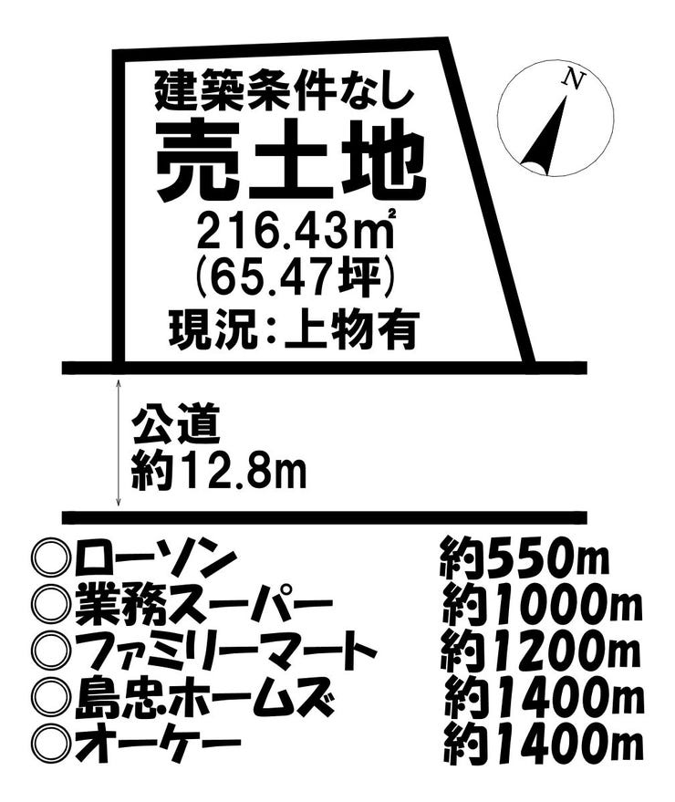 | 土地面積 | 公216.43㎡(65.47坪) | 接道 | 南東側(公道)幅 約12.8m |