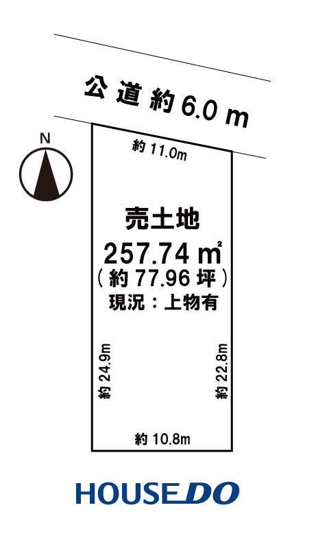 | 土地面積 | 公257.74㎡(77.96坪) | 接道 | 北側(公道)幅 約6.0m 間口 約11.00m |