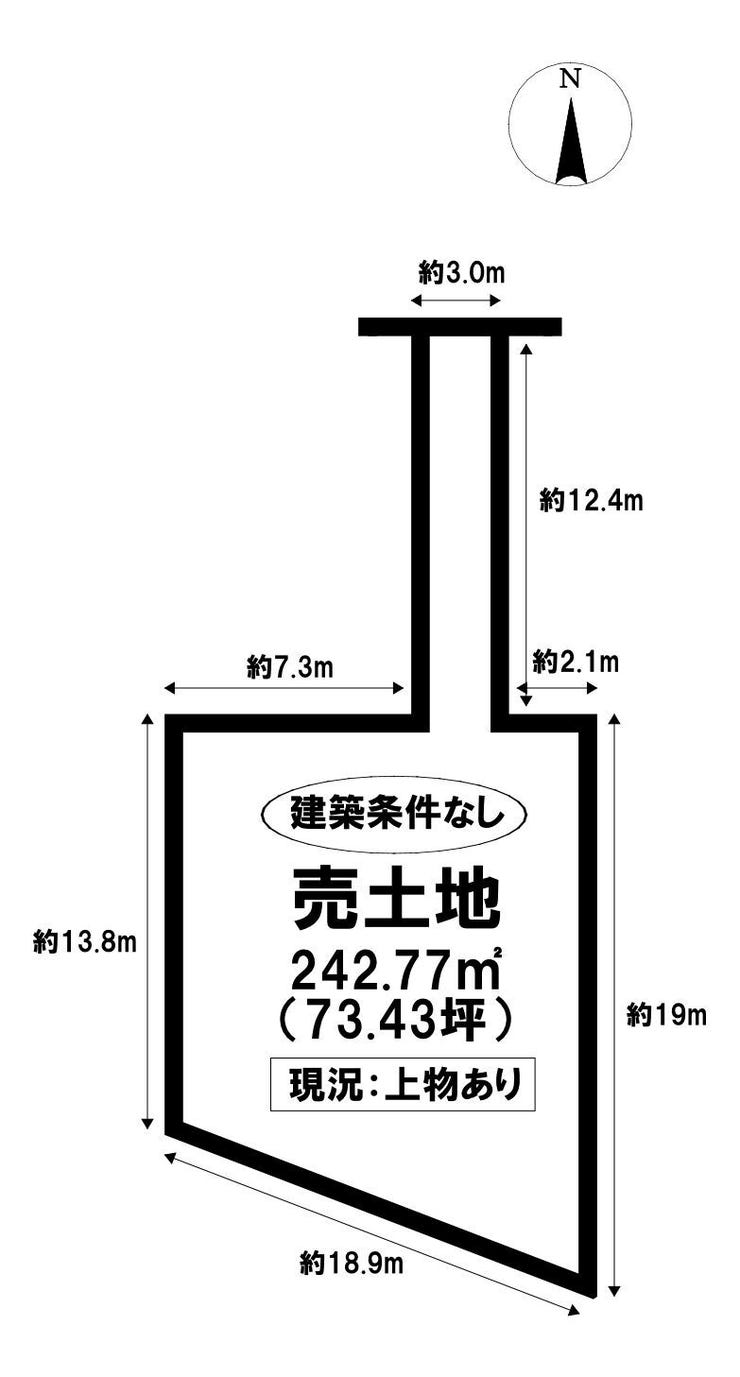| 土地面積 | 242.77㎡(73.43坪) | 接道 | 北側(公道)幅 約4.6m 間口 約3.00m |