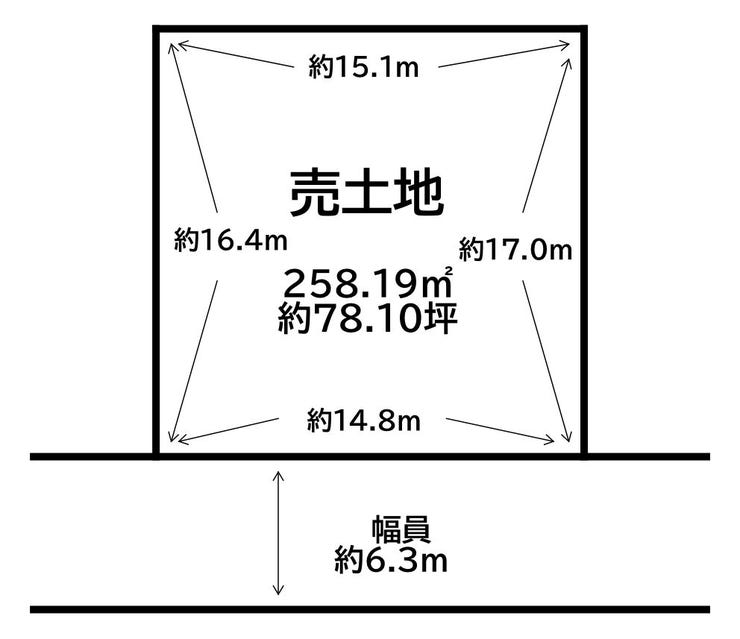 | 土地面積 | 公258.19㎡(78.10坪) | 接道 | 南東側(公道)幅 約6.3m 間口 約14.80m |