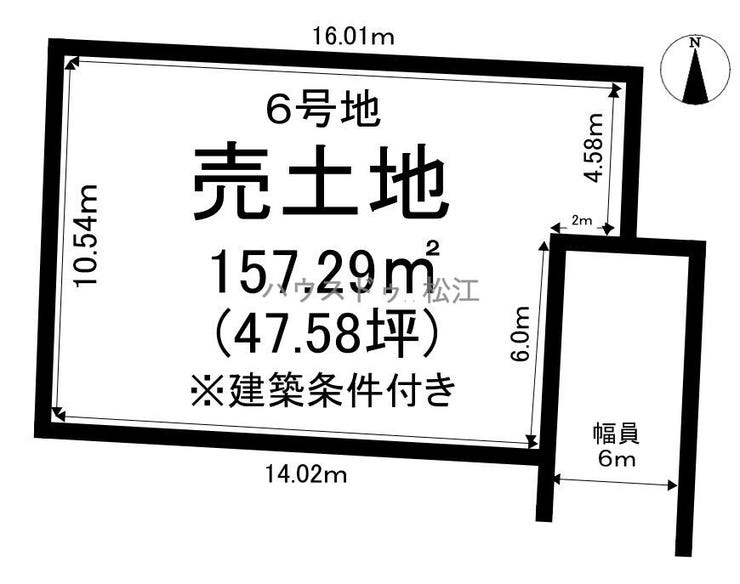 | 土地面積 | 公157.29㎡(47.58坪) | 接道 | 東側(公道)幅 約6.0m 間口 約6.50m |