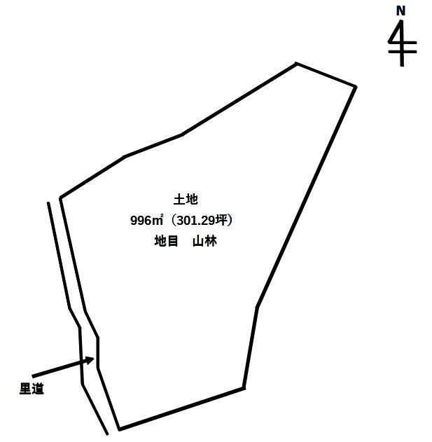 | 土地面積 | 公996㎡(301.29坪) | 接道 | 西側(公道)幅 約1.0m 間口 約34.54m |