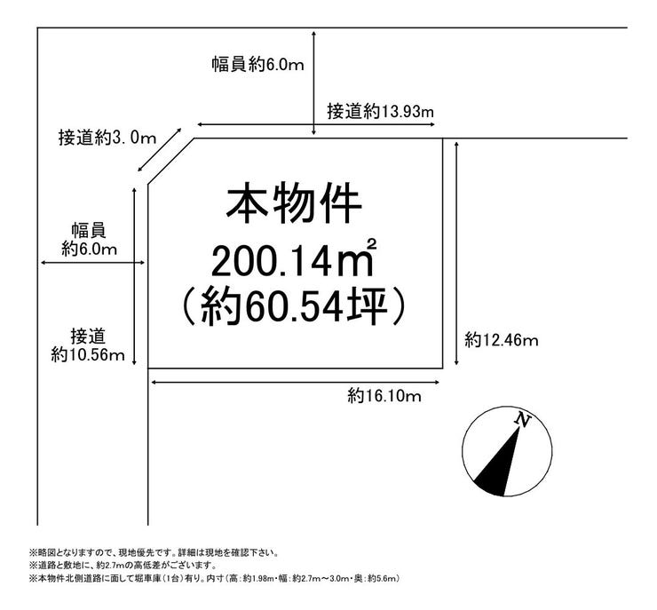 | 土地面積 | 公200.14㎡(60.54坪) | 接道 | 北西側(公道)幅 約6.0m 間口 約13.93m 南西側(公道)幅 約6.0m 間口 約10.56m |