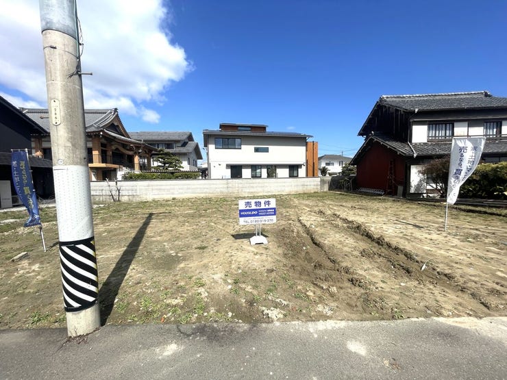 | 備考 | ◎造成渡し、電柱・支線は移設予定 ◎上下水道引込工事要 ◎確定測量前のため面積に変更が生ずる可能性有 ◎事務手数料165,000円(税込)要 ◎司法書士・金融機関売主指定 |
