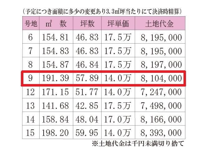 | 分譲情報 | 【販売区画】:8区画 |