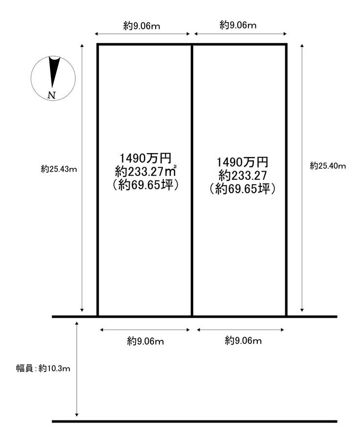 | 土地面積 | 230.27㎡(69.65坪) | 接道 | 北側(公道)幅 約10.3m 間口 約9.06m |