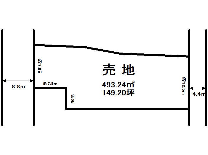| 土地面積 | 公493.24㎡(149.20坪) | 接道 | 西側(公道)幅 約8.8m 間口 約7.90m 東側(公道)幅 約4.4m 間口 約12.50m |