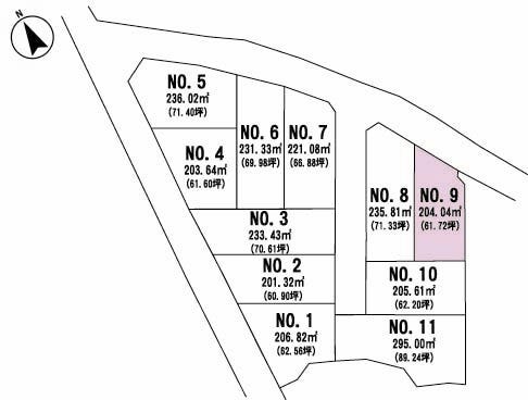 | 備考 | 区画No9:12,344,420円 ※現況造成中 ・水道 各区画1か所取出予定 ・排水 各区画1か所取出予定 |