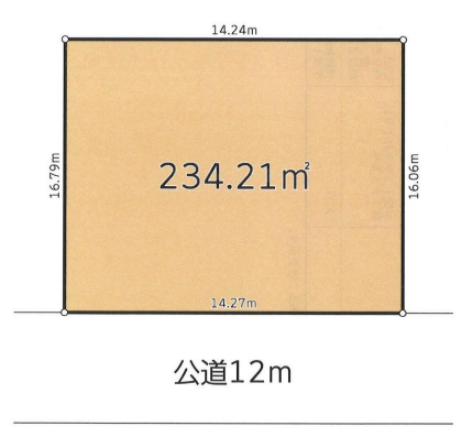 | 土地面積 | 234.21㎡(70.84坪) | 接道 | 南側(公道)幅 約12.0m 間口 約14.27m |