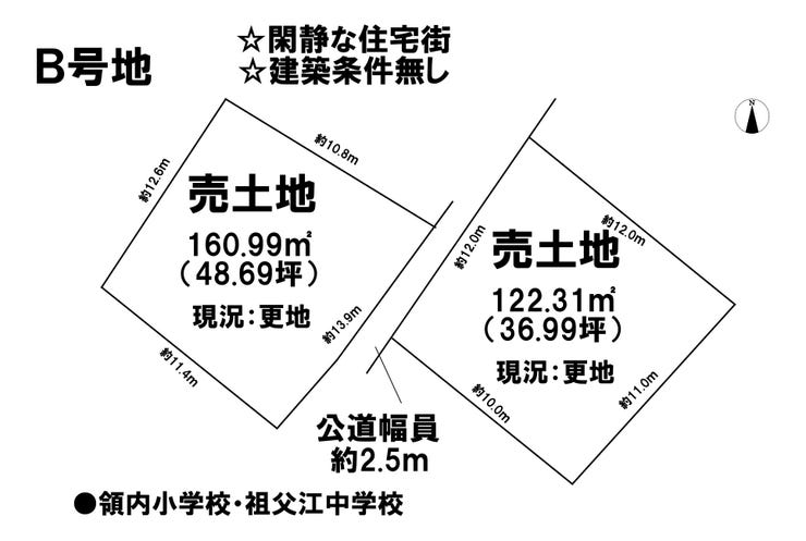 | 備考 | ※対象地:160.99㎡+122.31㎡ 合計283.3㎡(85.69坪) | ||