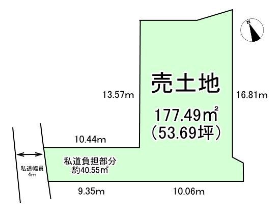| 土地面積 | 公218.63㎡(66.13坪) | 接道 | 西側(私道)幅 約4.0m 間口 約4.10m |