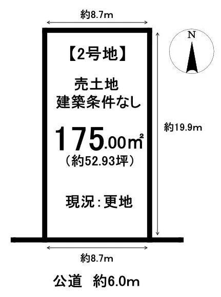 | 土地面積 | 公175㎡(52.93坪) | 接道 | 南側(公道)幅 約6.0m 間口 約8.77m |