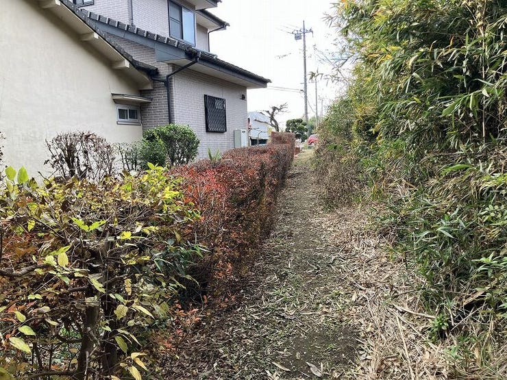 | 備考 | ・当該敷地は現況、建築基準法上の道路に接道していません(南側認定外道路)。接道の特例を受けるために建築基準法43条2項1号の許可が必要になります(事前協議)。 ・都市計画法34条14号許可(長期居住・無資産要件) ・上水道:引込工事、水道加入金(買主負担) ・浄化槽:宅地内処理 |