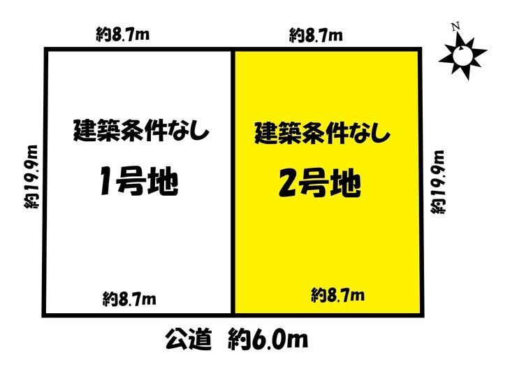 | 土地面積 | 175㎡(52.93坪) | 接道 | 南側(公道)幅 約6.0m 間口 約8.70m |