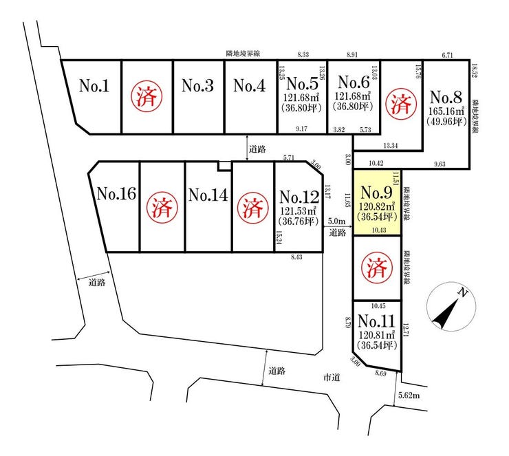| 土地面積 | 実120.82㎡(36.54坪) | 接道 | 西側幅 約5.0m |