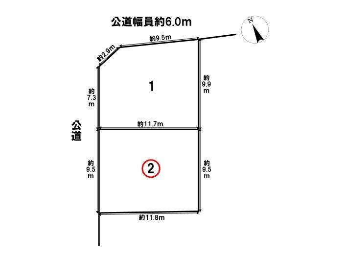 | 土地面積 | 112.67㎡(34.08坪) | 接道 | 西側(公道)幅 約9.0m 間口 約9.50m |
