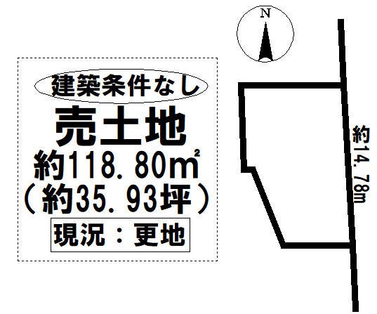 | 土地面積 | 公118.8㎡(35.93坪) | 接道 | 東側(公道)幅 約14.0m 間口 約14.78m |