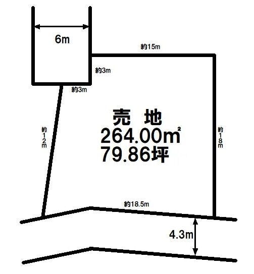 | 土地面積 | 公264㎡(79.86坪) | 接道 | 北側(私道)幅 約6.0m 間口 約4.50m 北側(公道)幅 約4.3m 間口 約18.50m |