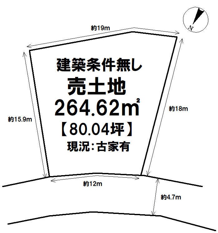 | 土地面積 | 公264.62㎡(80.04坪) | 接道 | 北側(公道)幅 約4.7m 間口 約12.00m |