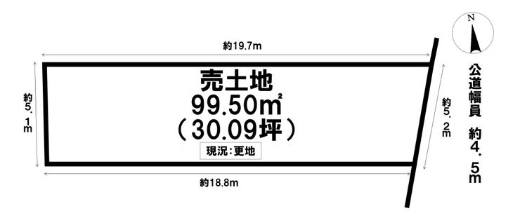 | 土地面積 | 公99.5㎡(30.09坪) | 接道 | 東側(公道)幅 約4.5m |